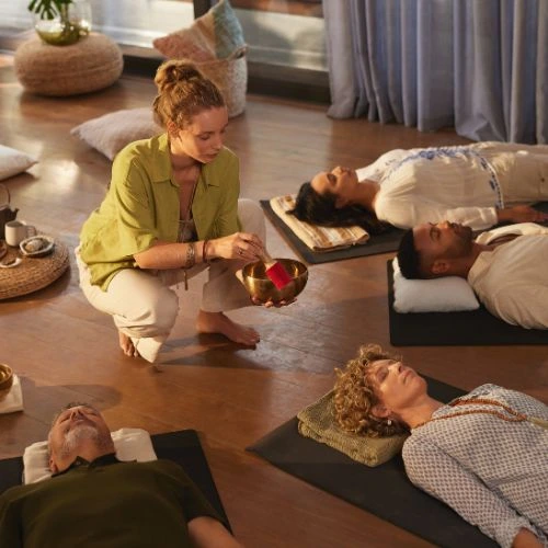 Sound healing sessions during the retreat use a combination of crystal singing bowls, gentle therapeutic tones, and rhythmic vibrations to guide your body into deep relaxation. Many clients describe a sense of mental clarity, emotional release, and improved sleep after their session.